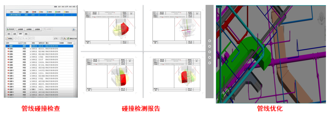 對(duì)綜合樓區(qū)域的機(jī)電模型進(jìn)行專業(yè)間的碰撞檢測(cè),導(dǎo)出碰撞檢測(cè)報(bào)告并進(jìn)行分析,結(jié)合圖紙會(huì)審結(jié)果,進(jìn)行機(jī)電管線綜合優(yōu)化。本次項(xiàng)目共優(yōu)化329余處,解決機(jī)電碰撞點(diǎn)329處,解決凈高問(wèn)題53處。