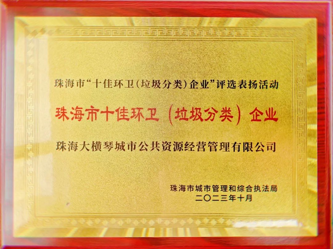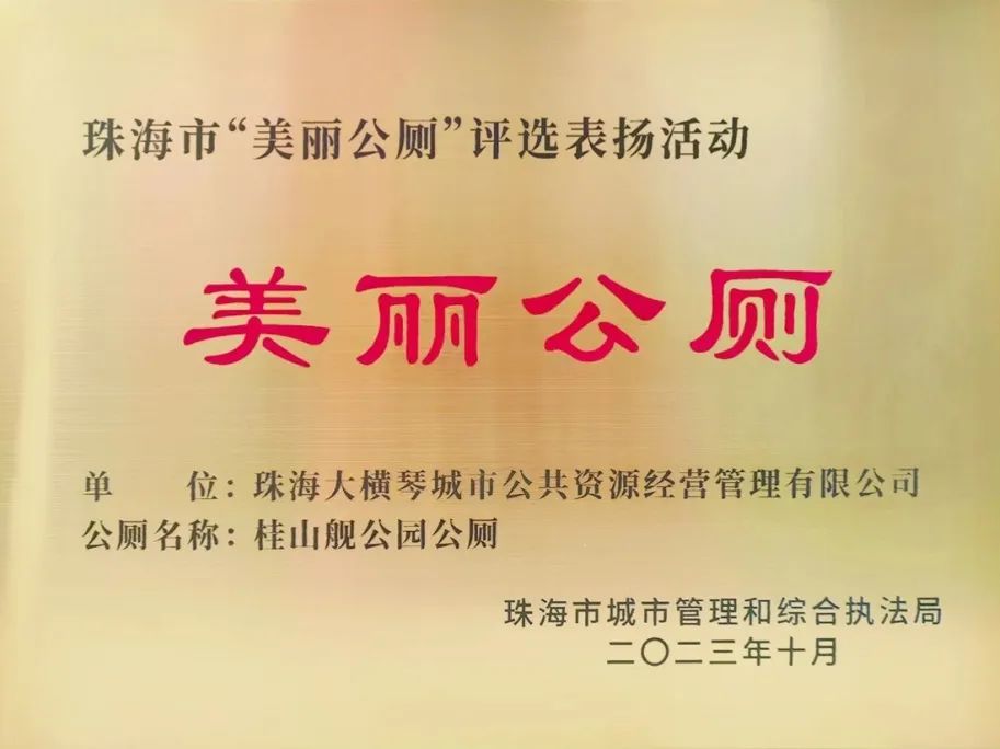 喜訊!日前在珠海市城市管理和綜合執(zhí)法局舉辦的評(píng)選表?yè)P(yáng)活動(dòng)中,大橫琴城資 榮獲2023年珠海市“十佳環(huán)衛(wèi)(垃圾分類(lèi))企業(yè)”稱(chēng)號(hào), 由大橫琴城資管養(yǎng)的桂山艦公園公廁榮獲2023年珠海市“美麗公廁”稱(chēng)號(hào)。