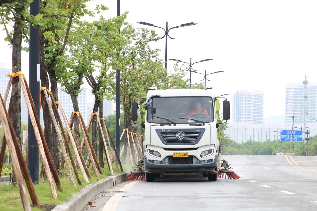 在合作區(qū)城市規(guī)劃和建設(shè)局指導(dǎo)下,大橫琴城資持續(xù)完善環(huán)衛(wèi)工作體系和硬件設(shè)施,把高標(biāo)準(zhǔn)嚴(yán)要求貫穿于作業(yè)環(huán)節(jié)與細(xì)節(jié)當(dāng)中。探索“沖、掃、吹、清、 運(yùn)、巡”的工藝流程組合,編制《環(huán)衛(wèi)運(yùn)營(yíng)方案》,規(guī)范各崗位標(biāo)準(zhǔn)化作業(yè)方法,推進(jìn)作業(yè)流程精細(xì)化;深入推進(jìn)“人機(jī)結(jié)合”的作業(yè)模式,采用機(jī)械清掃、高壓清洗、電動(dòng)吸掃、人工清掃、巡回保潔相結(jié)合的作業(yè)機(jī)制,有效提升道路清掃保潔的質(zhì)量和效率,營(yíng)造優(yōu)美城市環(huán)境。目前,合作區(qū)環(huán)衛(wèi)保潔機(jī)械化清掃率和沖洗率均已達(dá)到100%。