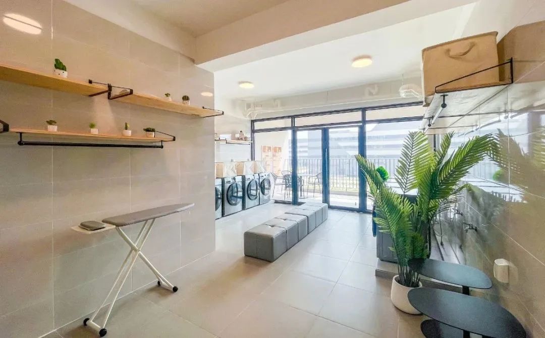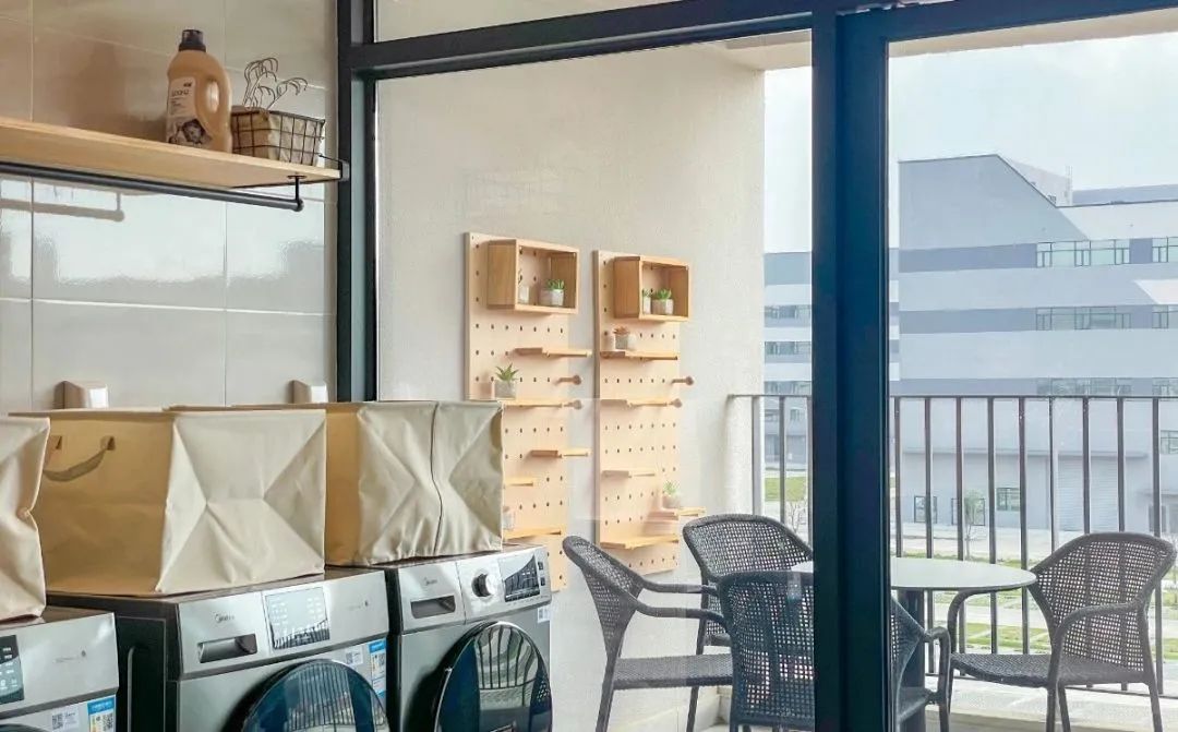 宿舍內(nèi)配備公共洗衣房,熨衣板、洗衣機(jī)、晾衣簍、洗手池等設(shè)施一應(yīng)俱全。