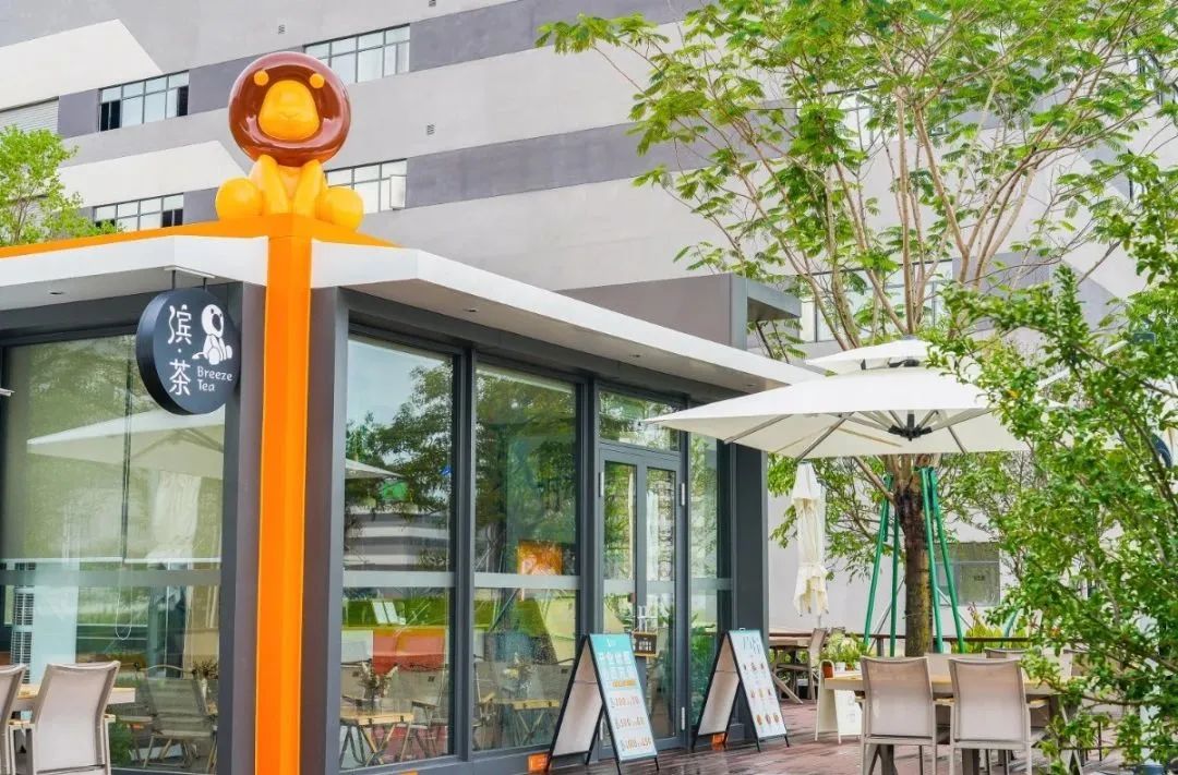 廠區(qū)內(nèi)的濱茶奶茶店將周邊打造成一個時尚、休閑的社交空間,創(chuàng)造了一個多樣化、充滿活力的休閑區(qū)域。