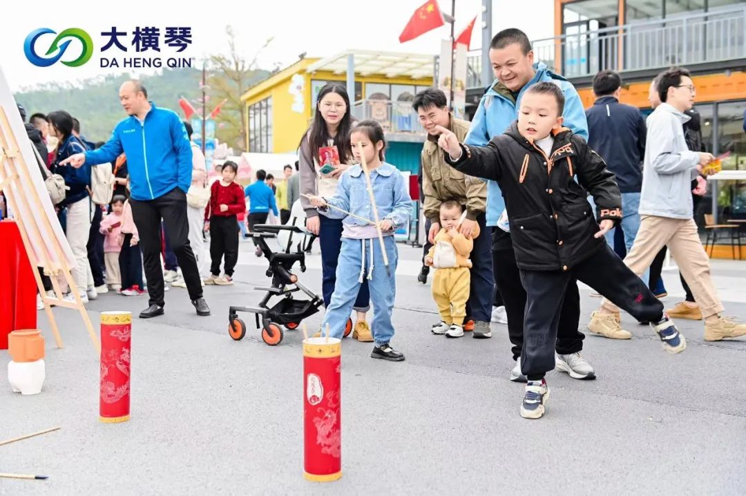 喧天的鑼鼓,精彩的舞龍舞獅,豐富的小游戲,趣味十足的定向集章,吸引了眾多游客駐足打卡?;顒?dòng)中,有不少來(lái)自澳門(mén)的游客手拿集章卡,在游戲區(qū)進(jìn)行游玩和探索,特別是在猜燈謎游戲中,許多孩子組團(tuán)猜謎,和家長(zhǎng)們一起開(kāi)動(dòng)腦筋,熱情討論,處處歡聲笑語(yǔ)。