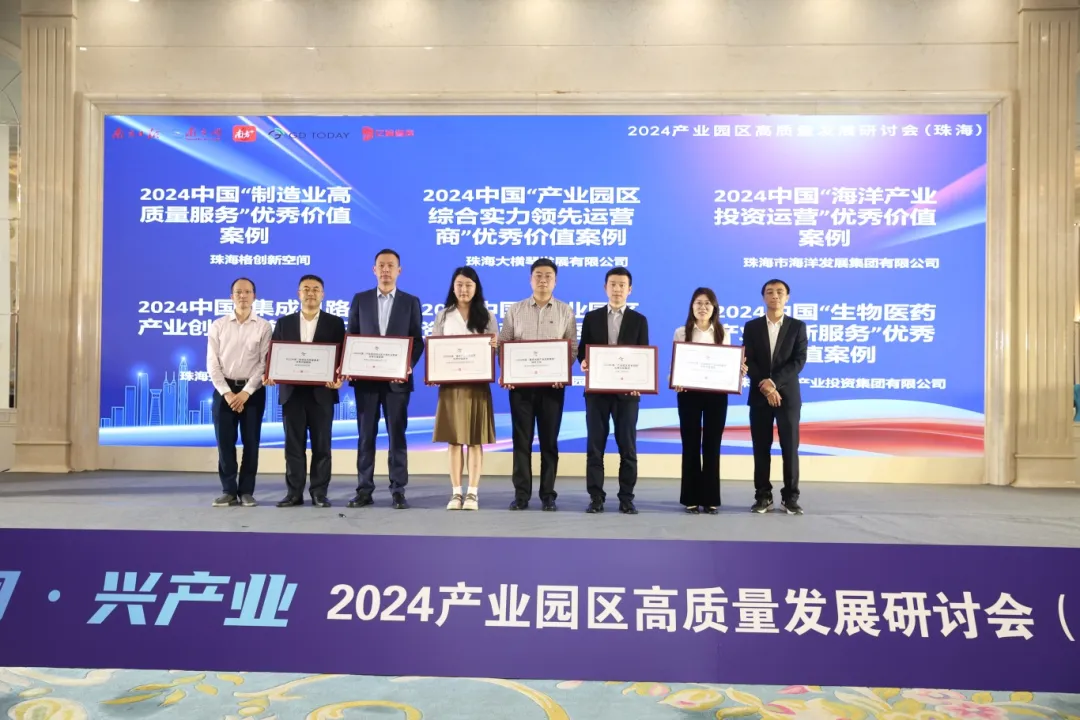 近日,由南方報業(yè)傳媒集團指導,南方報業(yè)傳媒集團珠海分社、億翰智庫聯(lián)合主辦的“新空間·興產業(yè)——2024產業(yè)園區(qū)高質量發(fā)展研討會(珠海)”在珠海度假村舉行,本次活動集聚產業(yè)投資機構、資管機構、金融機構、產業(yè)園區(qū)開發(fā)運營企業(yè)、科技企業(yè)等各大企業(yè)。活動發(fā)布了《2024產業(yè)園區(qū)發(fā)展趨勢展望及珠海產業(yè)園區(qū)高質量發(fā)展報告》研究成果。其中,大橫琴發(fā)展公司榮獲【2024中國‘產業(yè)園區(qū)綜合實力領先運營商’優(yōu)秀價值案例】,橫琴·澳門青年創(chuàng)業(yè)谷榮獲【2024產業(yè)園區(qū)產業(yè)服務優(yōu)秀價值案例】,橫琴國際科技創(chuàng)新中心榮獲【2024城市封面價值產業(yè)園區(qū)(未來引領類)】,勇奪三項行業(yè)大獎,再獲行業(yè)、市場及權威機構的認可。