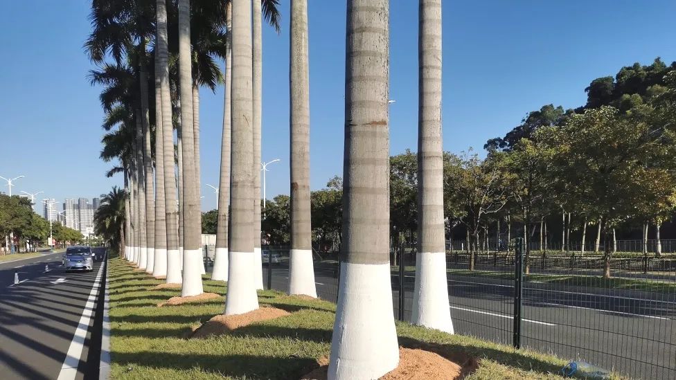 為了減少病蟲(chóng)害發(fā)生,做好秋冬季樹(shù)木養(yǎng)護(hù)工作,2023年10月,大橫琴城資以橫琴大道為示范點(diǎn)開(kāi)展喬木涂白工作,為喬木逐一披上美觀(guān)溫暖的“防護(hù)衣”。
